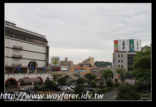 想起過去的事發發牢騷,吃完午餐開始在車內補寫遊記,連今天算來快兩天了,不多少寫一下不行。而我的位置是靠山壁而行,沒風景可看,心想若是坐自由席,那還可以坐到另一側去,指定席就不方便了。列車長大概也因這班列車行駛時間較長,沒什麼事幹,來來回回巡了好幾趟,就更不好換位置了,不然到時問起來語言不通徒惹麻煩。既沒法看風景又不想睡,寫遊記是最好的選擇,只是車子搖搖晃晃,字也就寫的歪歪斜斜。幸好如今在打字時還看得懂。列車過了松江站後到出雲站之間是一帶很廣大的水面,本以為是大海邊,其實只是眾多湖泊當中的一個。不過當時真的以為是大海邊,還拿起相機照相,因為風景滿好的。到站後,果然在19:15的此時賣店已經打烊或正在打烊又沒得吃了,真慘。先照照附近街景,ALPHA 1就在車站出來可見之處,而東橫INN也是。同時也找到了一畑電鐵所在,而車站前亦有公車可到出雲大社,看來交通方便不必擔心。車站前有一高中生模樣的人放著音樂在跳舞,其旁另有兩位彈吉他唱歌,這讓我想起2002年的門司港。看來這樣的行為對日本學生來說是很平常的事。