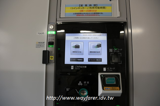 08:08 可以使用現金和ICOCA付費的寄物櫃。