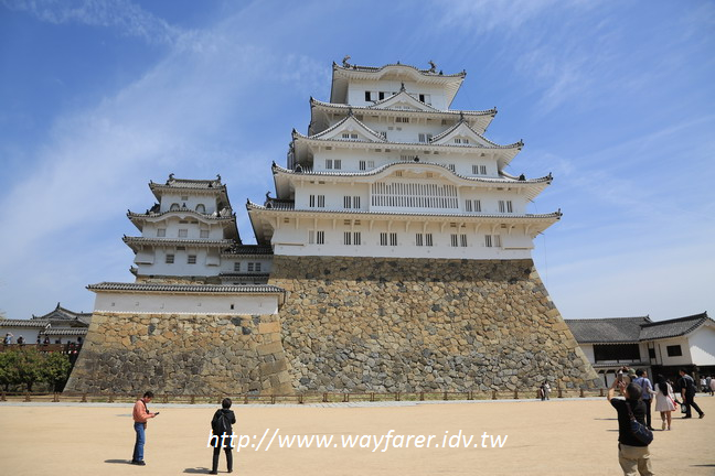 順路逛下去欣賞風景,在西之丸的位置看到的姬路城我認為是最棒的,而且應該就是一般會做為分享的照片,很有驚喜的感覺,很興奮。之後再到"千姬櫓"參觀,仍是要脫鞋才能逛。內部的歷史文物典故,印象仍在,所以純粹就是走過去到此一遊而已。不過在千姬櫓的窗戶看過去,姬路城呈現出另一種美感,甚至出來後再看,也仍毫不遜色,算是額外的收穫吧。姬路城真的太美了,難怪參觀人數可以用爆滿來形容。