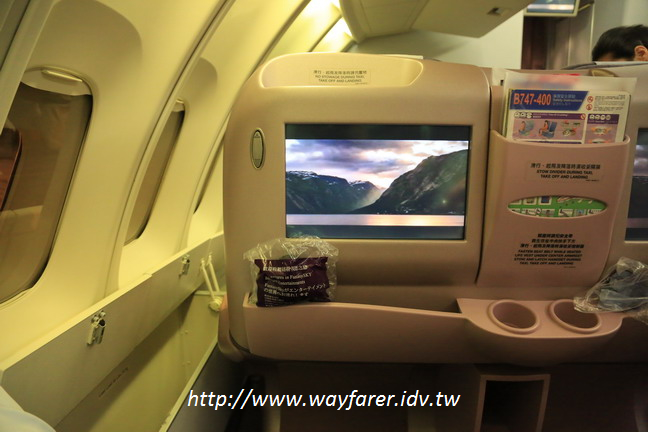座位是在機艙的樓上,預選座位是這樣。原本以為沒什麼,有搭過JL的樓上艙,跟一般沒分別。沒想到空間很寬敞,側邊還有小空間可以放行李,真是太棒了。難得有這樣的位置可坐,腳可伸展開來,很舒服。但應該不是商務艙之類的,因為機上餐不特別。機上電影選擇了去年通車的北陸新幹線節目,了解了興建過程中的難處與工程的偉大地方。