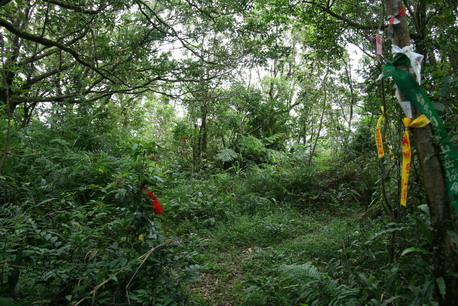 09:35 才走沒多久便遇到雜草叢生,又沒登山條,本想先去走火燒寮古道,但Jonathon先走去探了一下,發現有登山條,於是繼續。