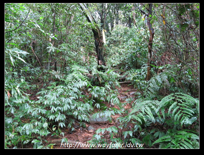 昨天天氣稍差,才決定今天來走,可惜也沒多好,主要是連日下雨濕滑,非常難走。尤其是往竹子山北峰、阿里磅瀑布源頭以及785峰與二坪頂古道、土地公嶺叉路附近的箭竹林步道,雖然路跡已算很清楚,但陡上、陡下路段多,地面的濕滑讓我跌了好幾次。整個走來這路線還是有好天氣來走會比較好,但也不能是艷陽高照的大熱天,那也將是很痛苦的。只是難得有這麼好的箭竹林清楚的步道,真得儘早去走,一旦時日久了,箭竹林又掩蓋了步道,那就更不適宜了。