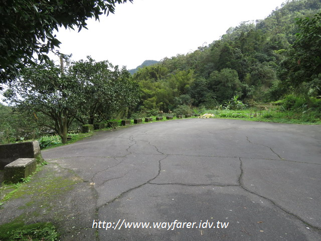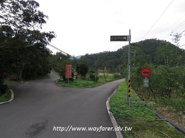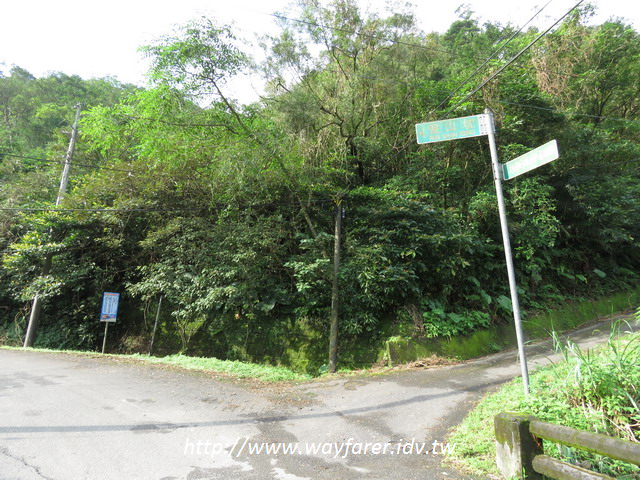 09:35 一直走主線的柏油路陡上到此叉路,右為民宅不取;取左(其實也仍是主線柏油路),快接近盤山坑山登山口了。