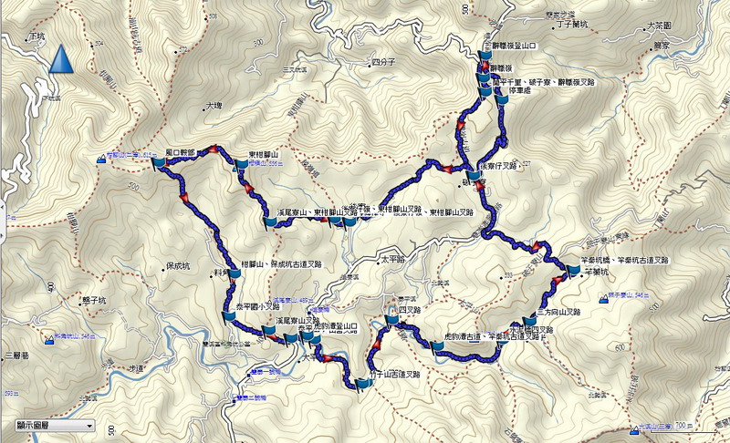 GARMIN eTrex 30 GPS記錄的行走軌跡。白底文字是我的註解。