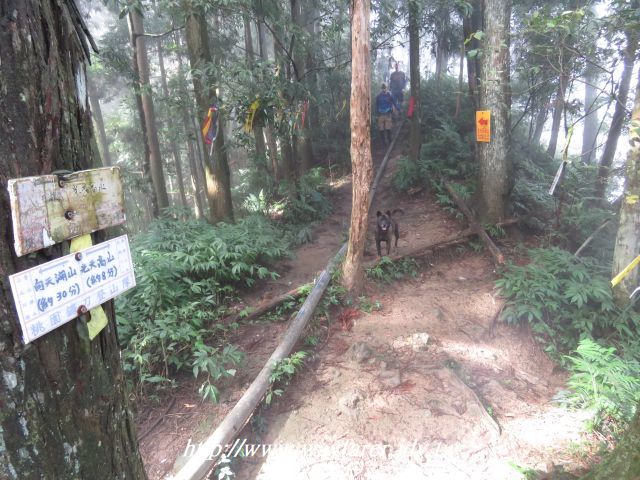 12:48 三叉路。右回向天湖停車場;取前光天高山。再遇到那隻小狗與另四位山友。