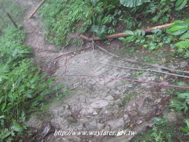 09:20 路上遇到多處以繩索與塑膠繩圍成的護欄,我猜想是部落居民做的,讓到此的登山客走得放心,登山客多也就帶來人潮。