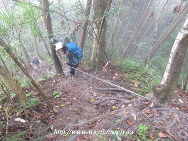 13:21 上張照片同一處,這岩壁一看就知道不好走,抓緊繩索,小心下行。