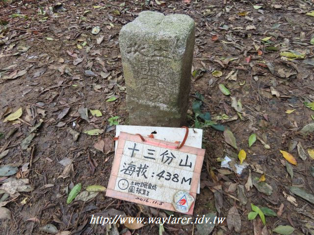 10:36 十三分山,海拔高度438公尺,土地調查局圖根點。