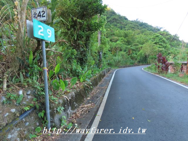 06:14 看到北42鄉道29K,前方左邊缺口便是柑腳城山(下坑山)登山口了。