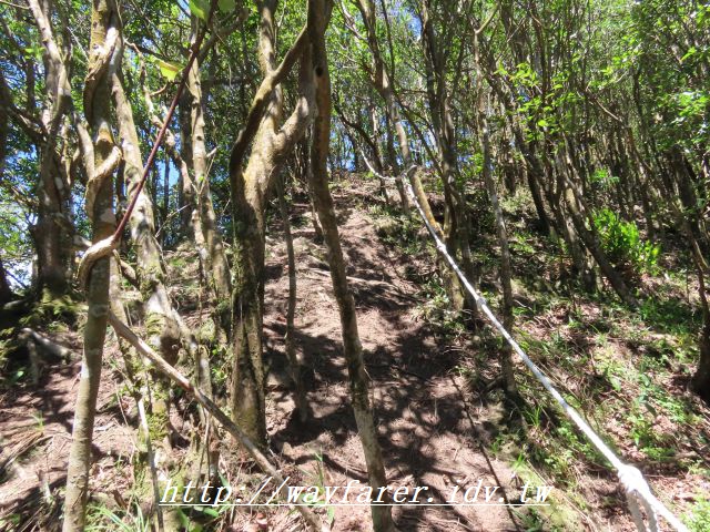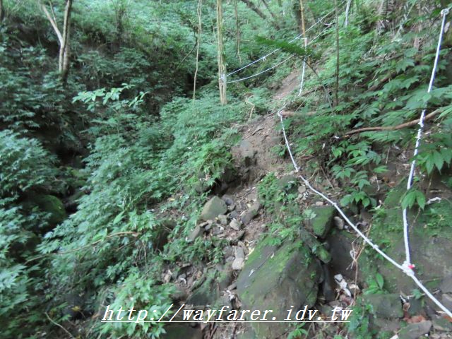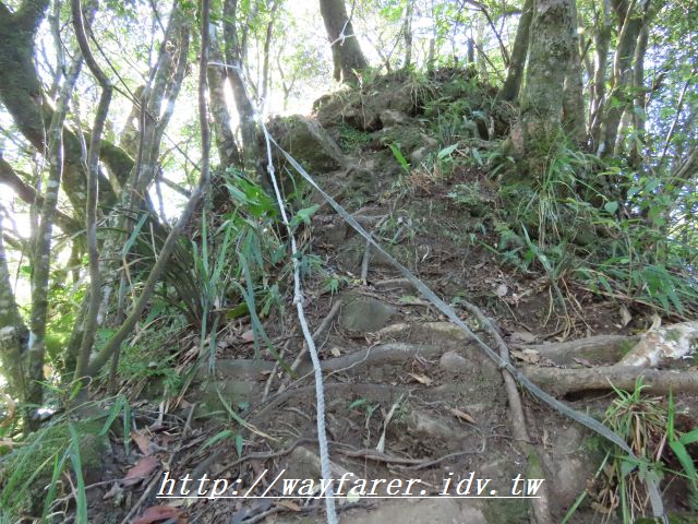 07:10 拉繩陡上,三個月前路跡沒清理過的一段,如今已很清楚好走。