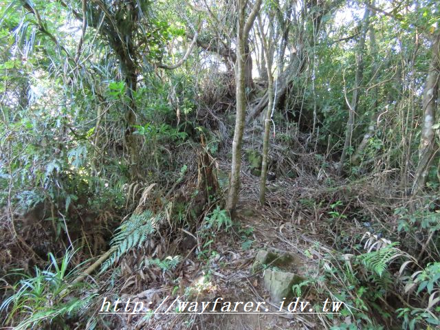 08:59 再上坡約2分鐘便到了柑腳山。從威惠廟到此花了2小時54分鐘;從柑腳城山到此花了1小時59分鐘;從下坑越嶺道叉路標示往柑腳山約120分鐘,我走了1小時38分鐘。