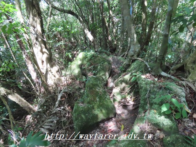 11:44 ~11:53 看到這石頭有樹蔭,累了,休息。也把雨鞋脫下讓雙腳透透涼。
