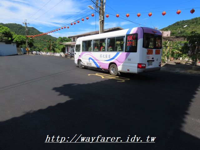 14:06 長源社區牌樓。有兩位山友在等公車到雙溪車站。公車剛好要停靠了。