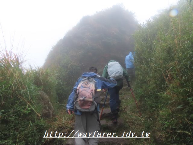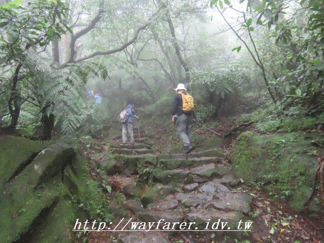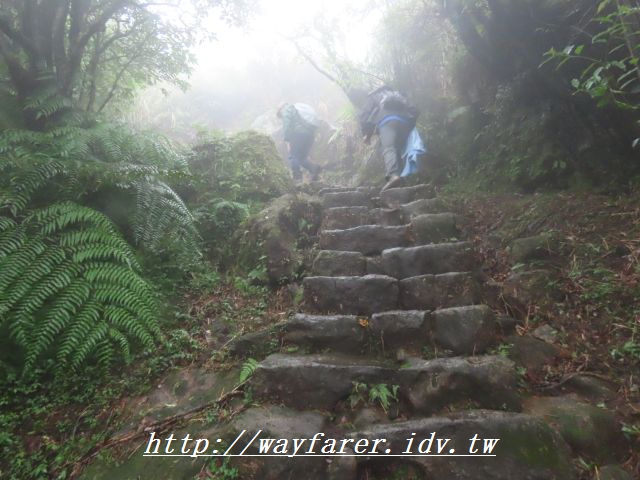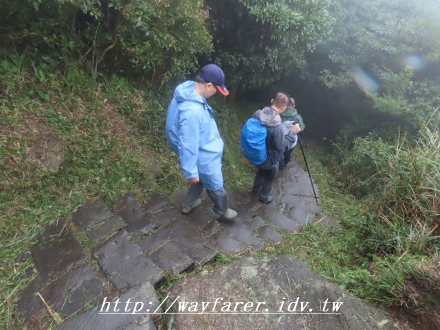 11:30 上七星山的石階步道不管哪個方向都很陡,今天輕風小雨,行走雖不因熱而感到痛苦,但這樣的陡上還是辛苦的。