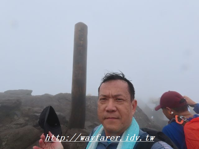 11:54 插空隙來個與標高柱自拍,突然來個"抱避鬼"破壞畫面。