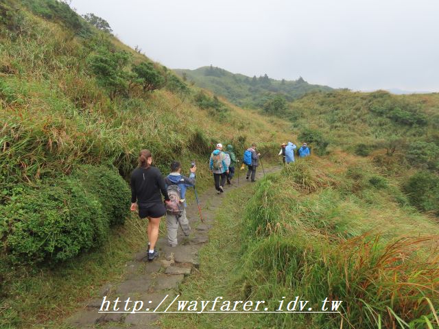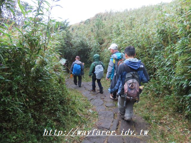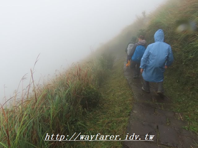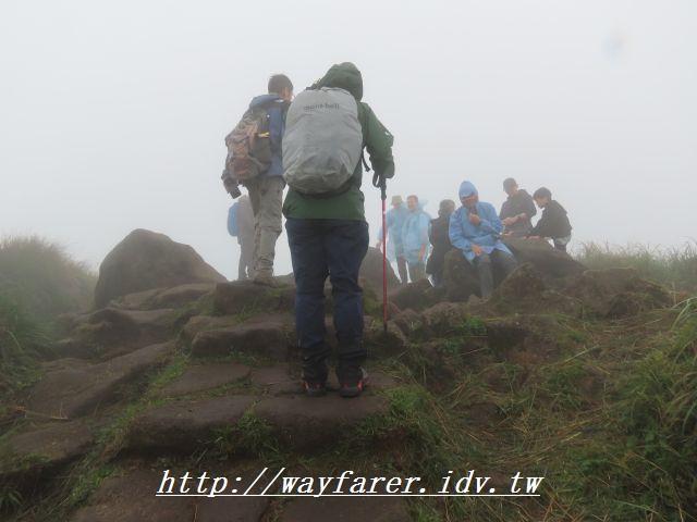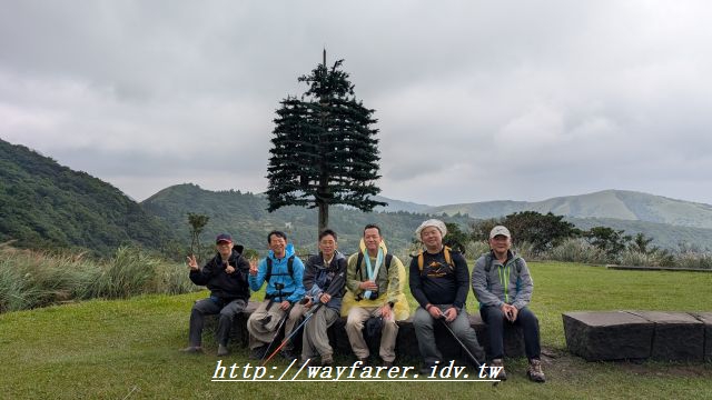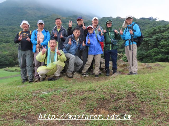 12:20 大合照後大家都趕緊離開七星山頂的淒風苦雨,往七星山東峰。