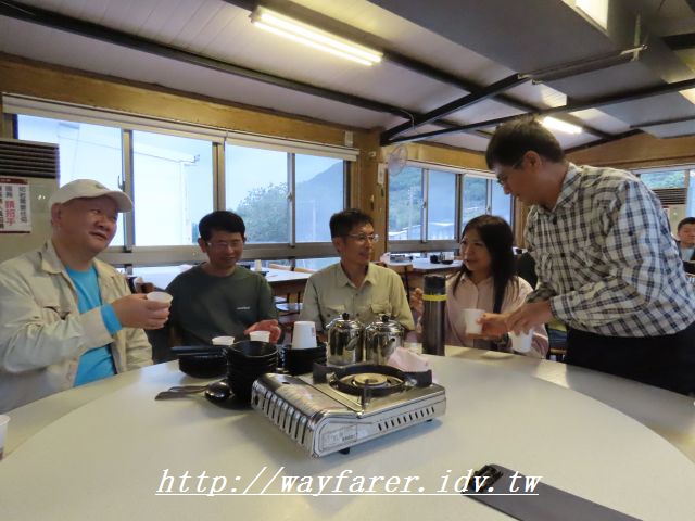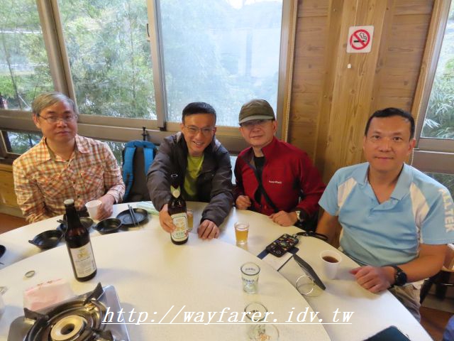 15:10 爬山結束後的慶祝,喝酒不開車、開車不喝酒,有喝的都不開車。我也沒喝只是不想喝,附贈的熱茶我就很喜歡了。