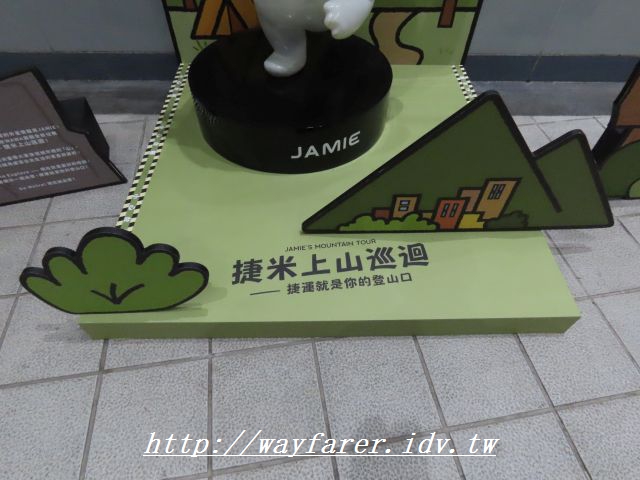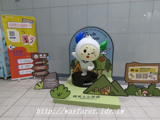 17:56 感謝Tony開車載秀峰和我到捷運松山站,讓我方便有座位一車到底回新店。秀峰兄帶我來看這吉祥物,有個佳句"捷運就是你的登山口",很有意境。