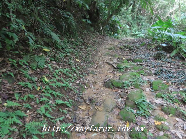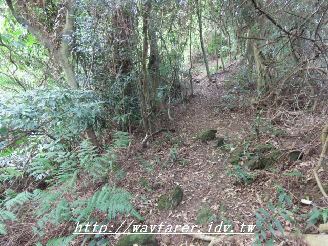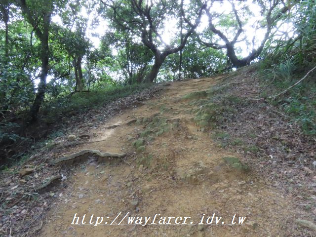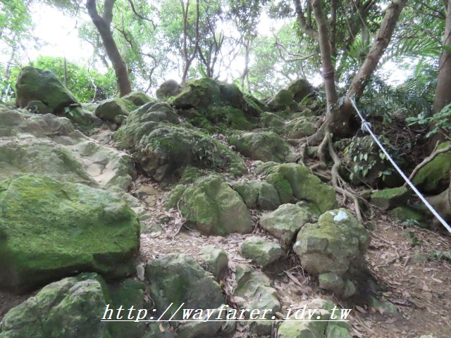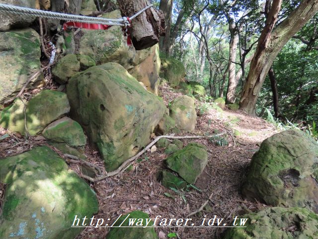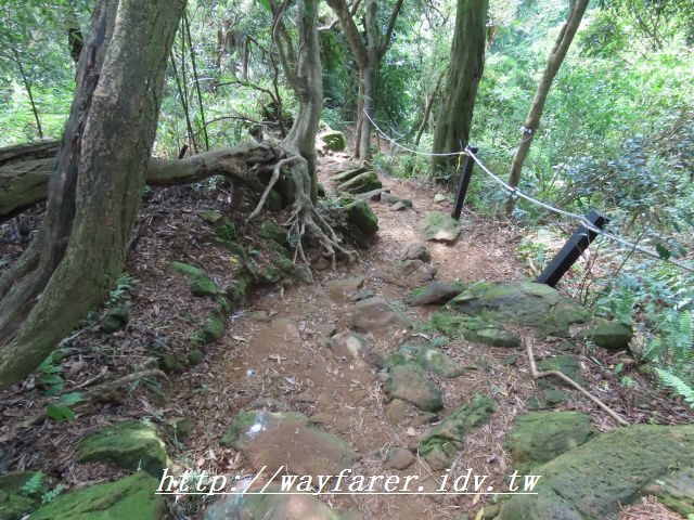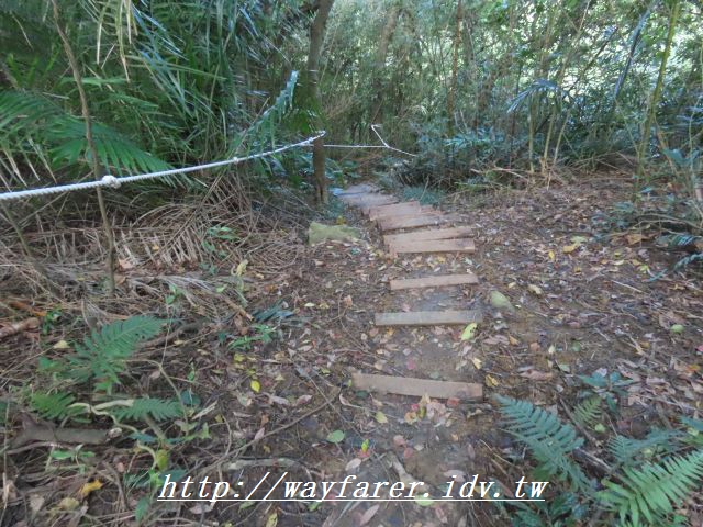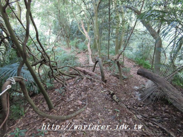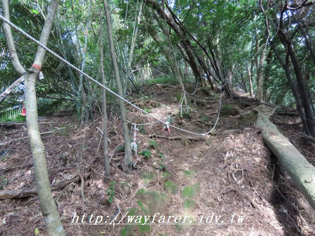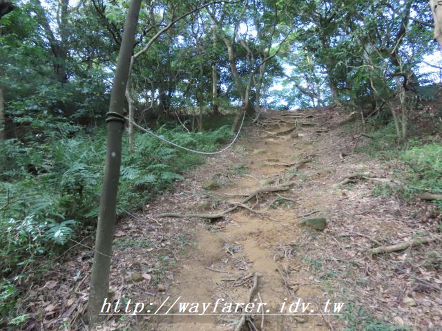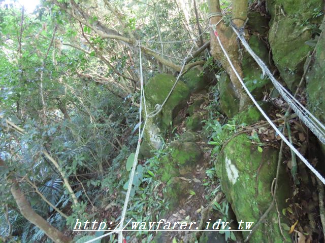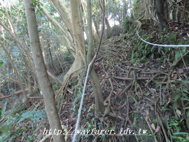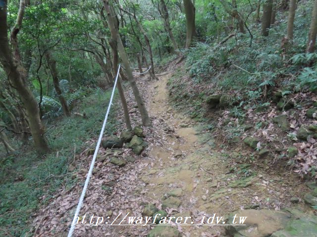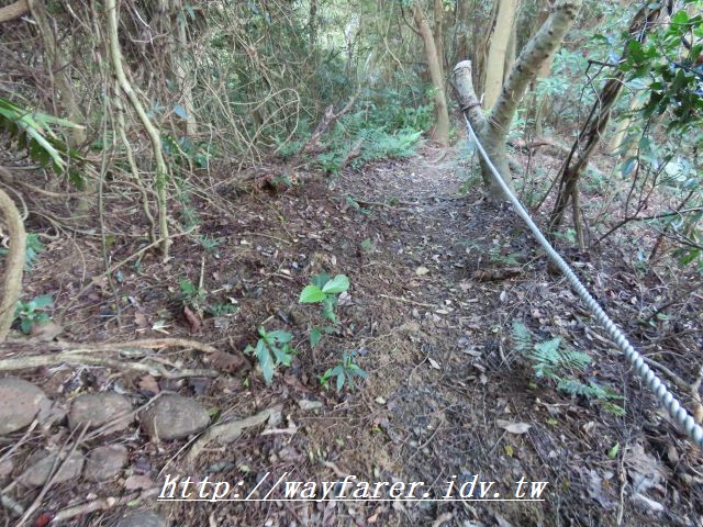 12:15 有點傾斜的土徑,有繩索輔助。