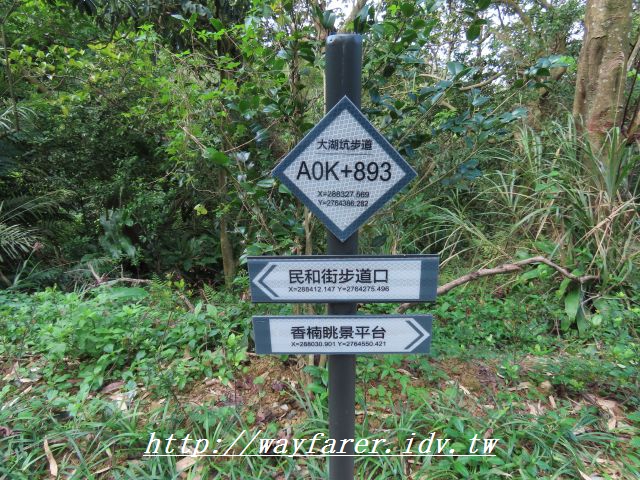 10:46 巷口有大湖坑步道導覽立牌。