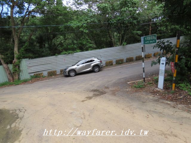 10:06 運氣好,很快Tony便接起電話,也得到解答。往大湖坑步道的叉路不在福安宮,而是往前再走個幾十公尺的九芎樹此處,有箭頭白漆。尚無官方指標指引,我相信以後會有,此時離真正完工開放的時間還有一周。若無Tony的幫助,到了這裡不確定也不敢走。