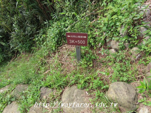 11:55 回到續行路的光明山稜線,此處為終點標示3K+500。