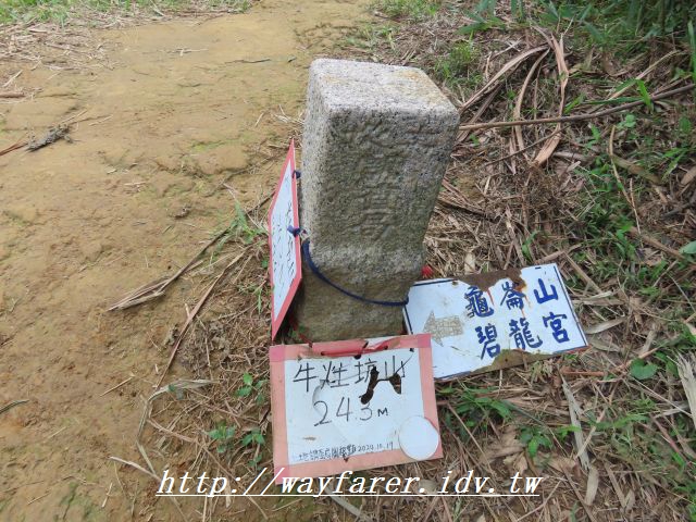 12:32 牛灶坑山,又稱牛灶山、牛草坑山,海拔高度243公尺,土地調查局圖根點。