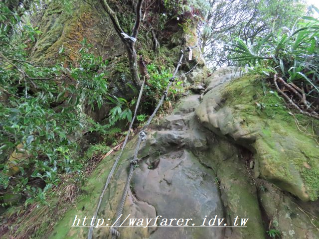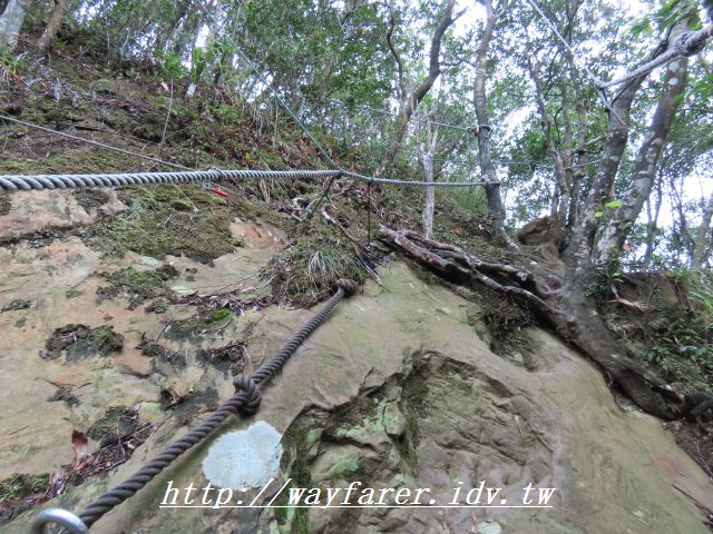 10:55 頗為傾斜的岩壁小徑,幸好有繩索還有小踏點。