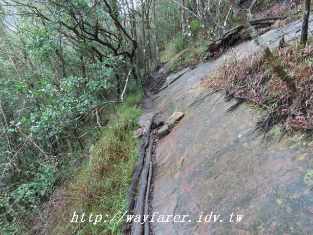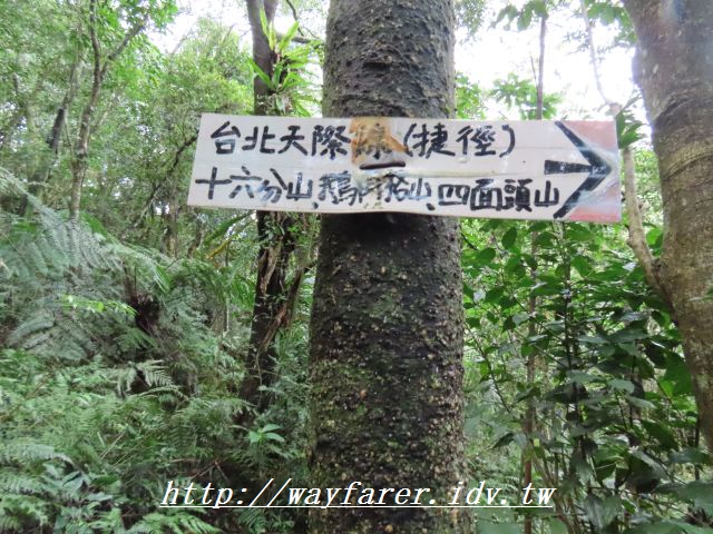 13:38 標示捷徑,其實旁邊沒看到其他山徑,後來接回另一端的正路、捷徑叉路才發現正路路跡變得極差,捷徑根本已被走成正路了。
