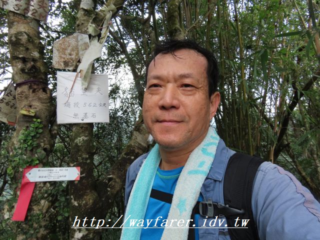13:30 貓空尖在路旁。貓空尖,海拔高度562公尺,無基石。自拍到此一遊。