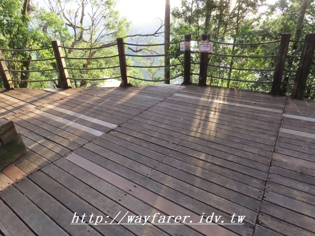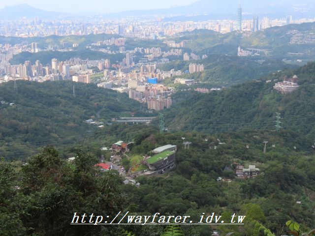 14:18 下行1分鐘到此處平台。右往貓空纜車;直行鵝角格山;左往銀河洞瀑布。取前鵝角格山。
