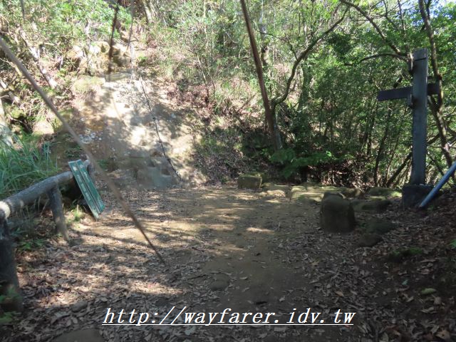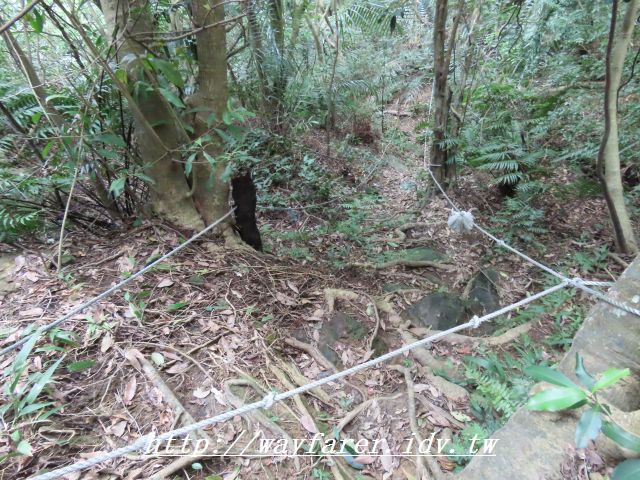 14:26 滿陡的上坡到此轉入自然山徑,上鹿窟崙山登山口。