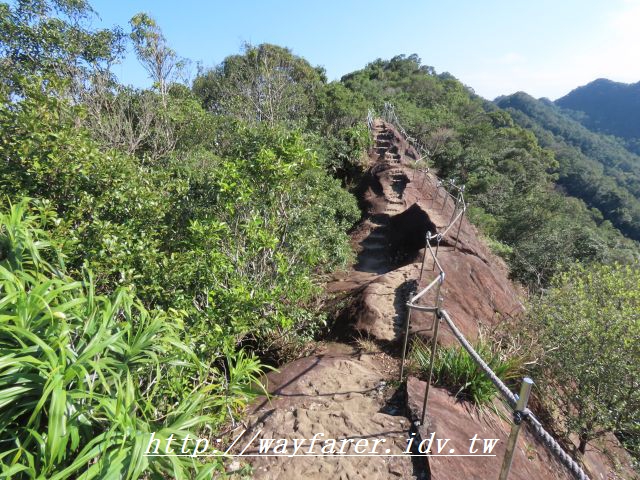 09:10 陡峭的岩稜路,鑿出很安全好走的踏階。