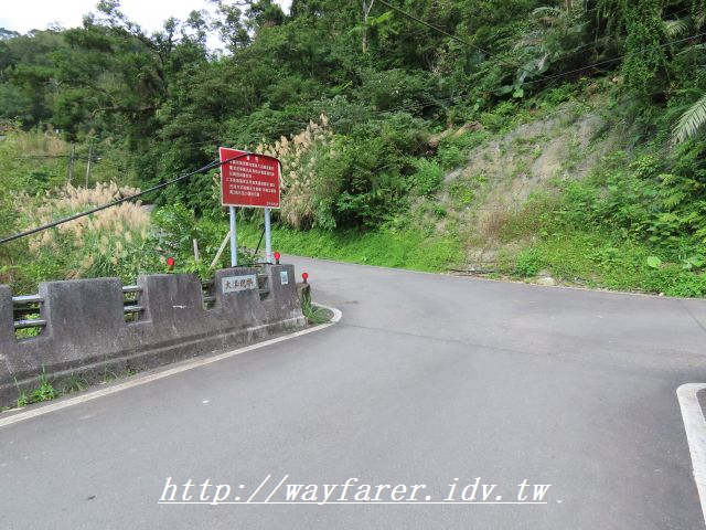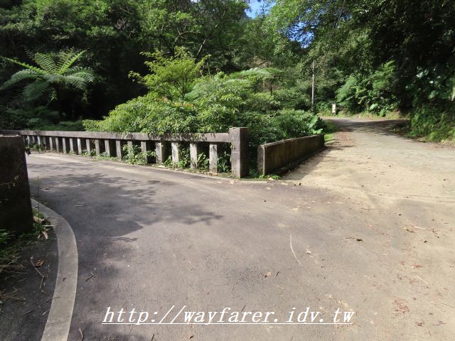 12:28 到了雞冠山登山口,取左過橋。右前則是紙寮坑古道口,環大台北天際線第二段在此分為兩路線。