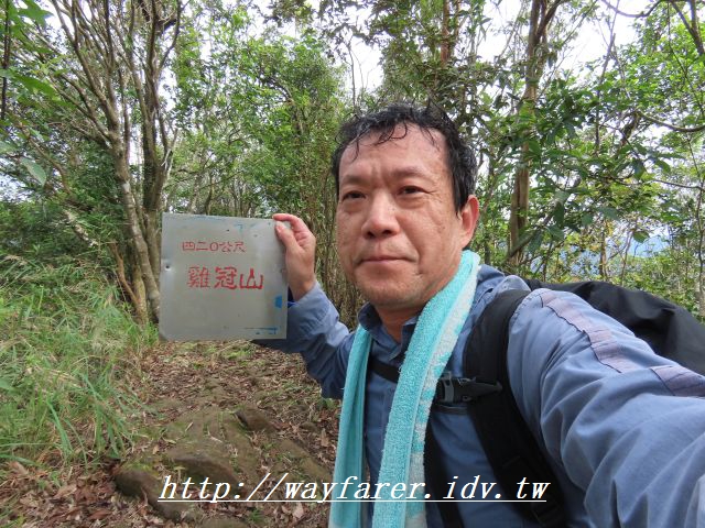 13:05 感覺很辛苦地到了雞冠山,海拔高度420公尺,野牛3號基石。從登山口到此花了37分鐘。