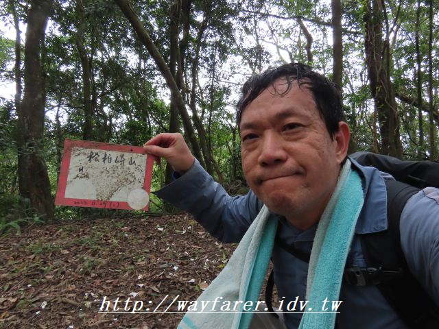 13:51 有點總算是到了的感覺。松柏崎山,海拔高度437公尺,土地調查局圖根點。從雞冠山到此花了39分鐘。