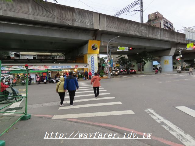 16:51 前方黃昏市場,其上鐵路高架橋,取右汐止火車站。