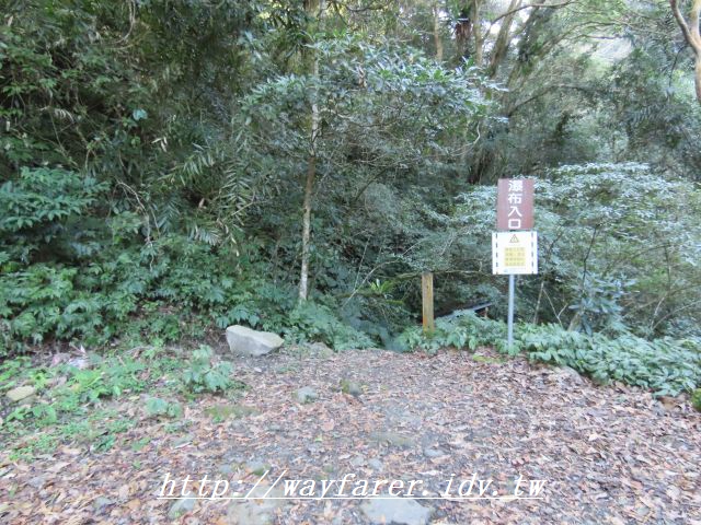 09:28 原路3分鐘回到鴛鴦谷瀑布入口,取右續行。