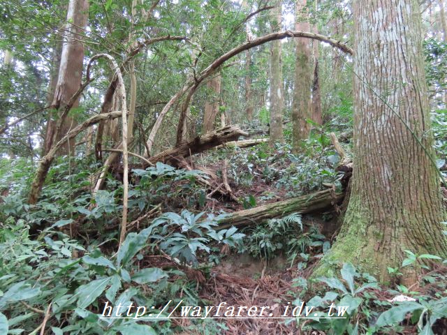 15:15 這時便一路下坡且有些陡度,路徑不寬也多像是竹子林區。