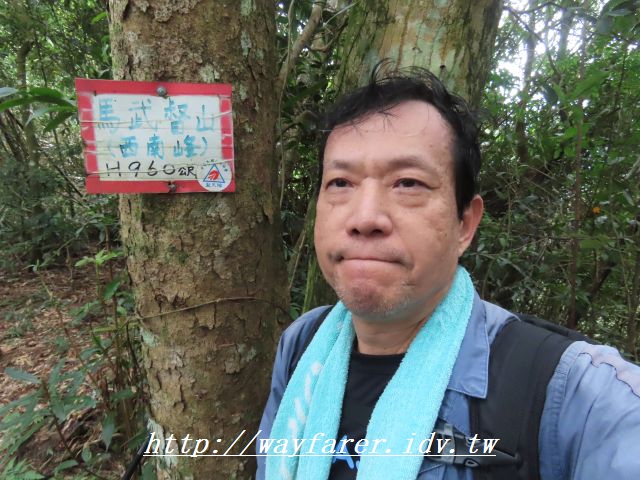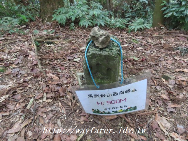 馬武督山西南峰,海拔高度960公尺,山字水泥柱。