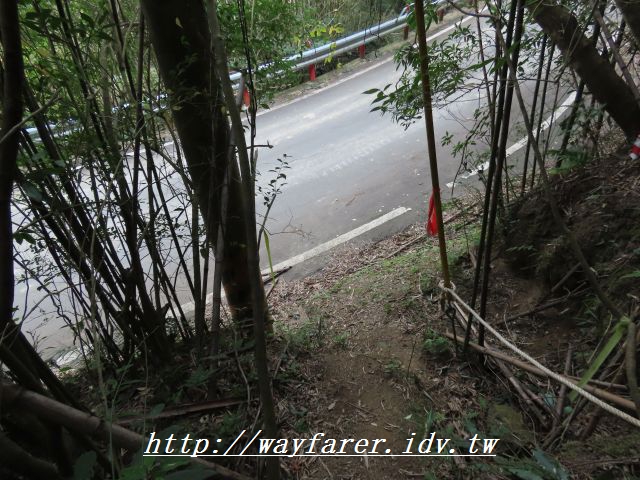 15:38 回照登山口。這樣看就能知道有多陡。此登山口電線桿編號是【水田幹123號】。