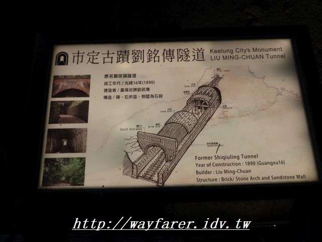 09:32 入口前自拍,現在溫度12度C,所以穿得比較多,幸好整天都沒下雨也沒風,不過隧道內因通風,風勢強勁會有些冷意。 隧道內有一排對劉銘傳隧道的導覽簡介。