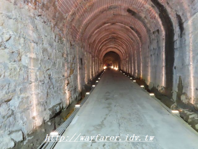09:38 劉銘傳隧道南口有劉銘傳所題的【曠宇天開】字樣,但因簡介提到的"北口處設置解說牌讓訪客了解隧道的歷史背景及挖砌的艱辛,南口處水波紋投影別具特色","水波紋投影"就 讓相機一拍,【曠宇天開】的題字就太亮而看不清楚了。