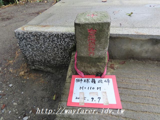 09:56 到了基石在路邊的獅球嶺北峰,海拔高度110公尺,台灣省政府圖根補點。