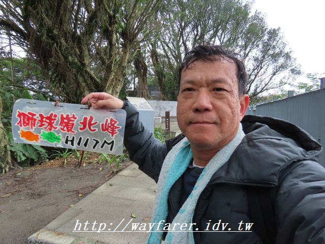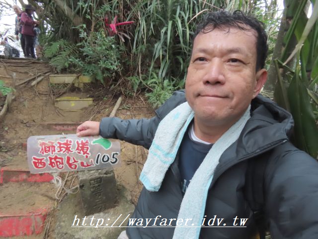 10:34 等了山友2分鐘才換我照。獅球嶺東砲台山,又稱三坑山、獅球嶺山,海拔高度155公尺,基都主09。小吳哥窟在此。