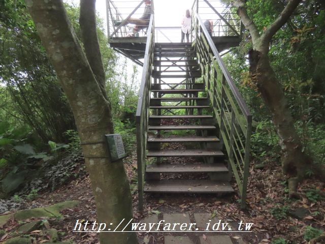 09:00 原本08:00從觀音山遊客中心發車的橘20公車,應該在08:25抵達捷運蘆洲站,然後約在08:35左右會來到去程端的捷運蘆洲站回到觀音山遊客中心。但等到08:37,還是沒看到。利用公車動態也沒任何消息,倒是可以看到下一班次09:20 的動態,我想那就是脫班了。另外再往前一點的公車站牌有785號公車可到凌雲禪寺,但想到 今天是長路程且從凌雲禪寺到觀音山遊客中心約需20分鐘的上爬路段,決 定花300元到觀 音山遊客中心起登比較輕鬆。路上問了計程車司機,果然橘20公車在假日很常脫班,客訴不少 但仍然沒改善。約20分鐘到了觀音山遊客中心的候車處,準備就緒走往觀音山遊客中心。前方階梯上去。