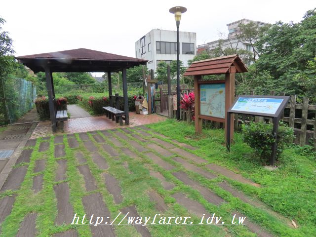 11:56 林口老公崎步道入口。涼亭右下便是老公崎步道;直行則是新寮休閒步道,會互通成為環狀步道。