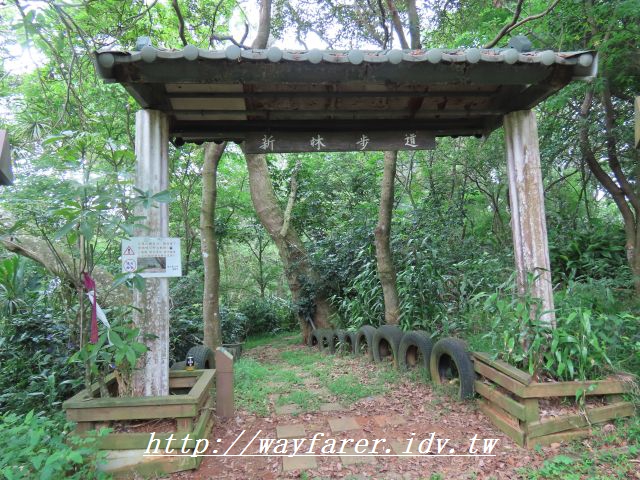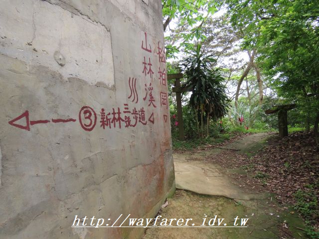 13:36 走出老公崎步道了,此牌樓稱為【新林步道牌樓】,標示2200公尺。