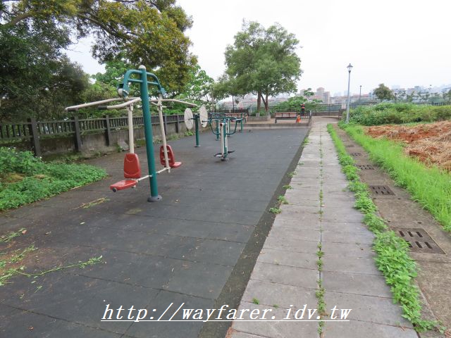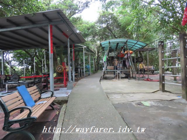 16:03 到了山頂公園,有很多運動設施,都有棚子遮擋,陽光與小雨應該都不怕。
