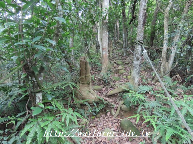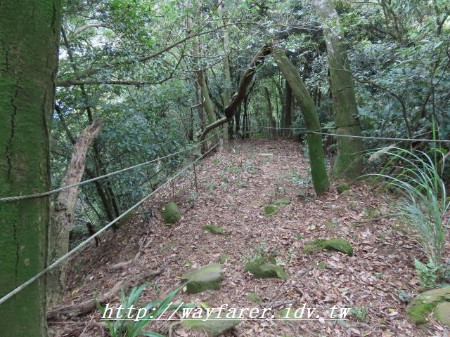 09:22 緩坡下行1分鐘到此左邊小徑魯地圖標示"艱難路線"往廖添丁洞,不取,取正路。
